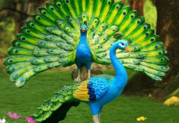 玻璃鋼彩繪孔雀雕塑,為公園草地增添靈動之美