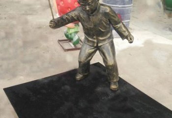 優(yōu)雅銅色仿玻璃鋼兒童打陀螺雕塑