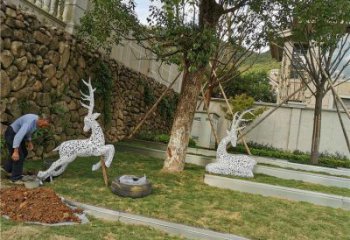 現代簡約不銹鋼梅花鹿擺件,點綴您的庭院園林景觀